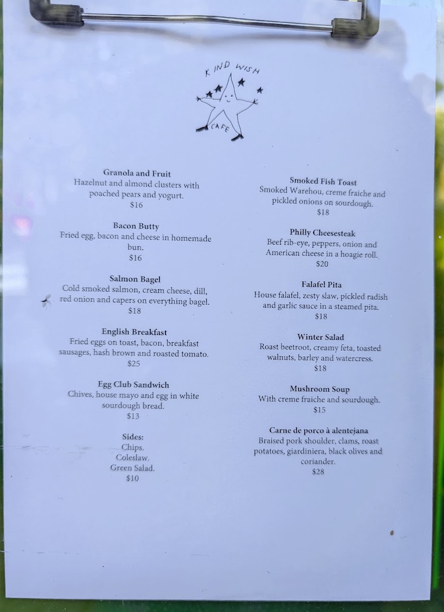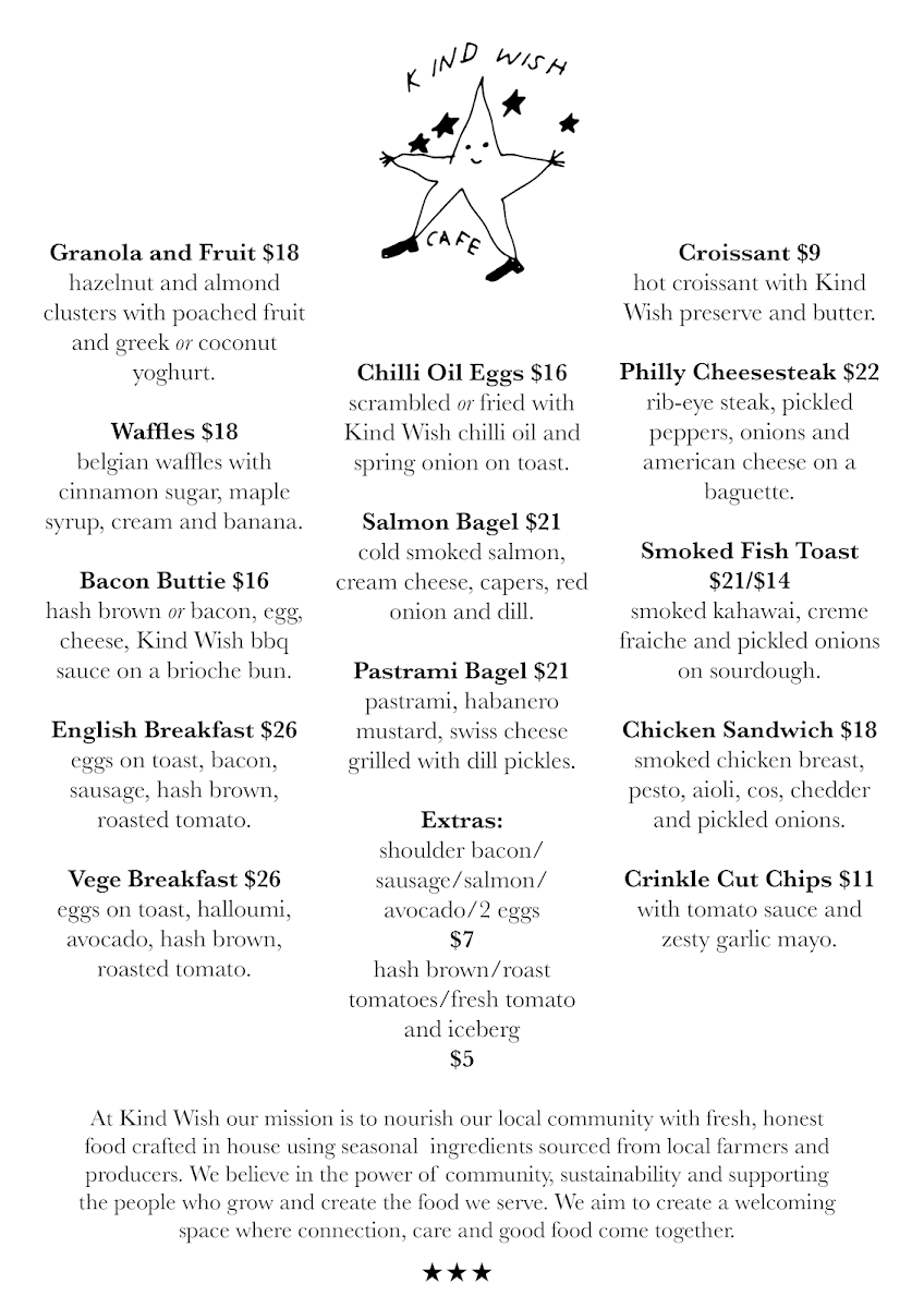 Kind Wish Cafe Menu